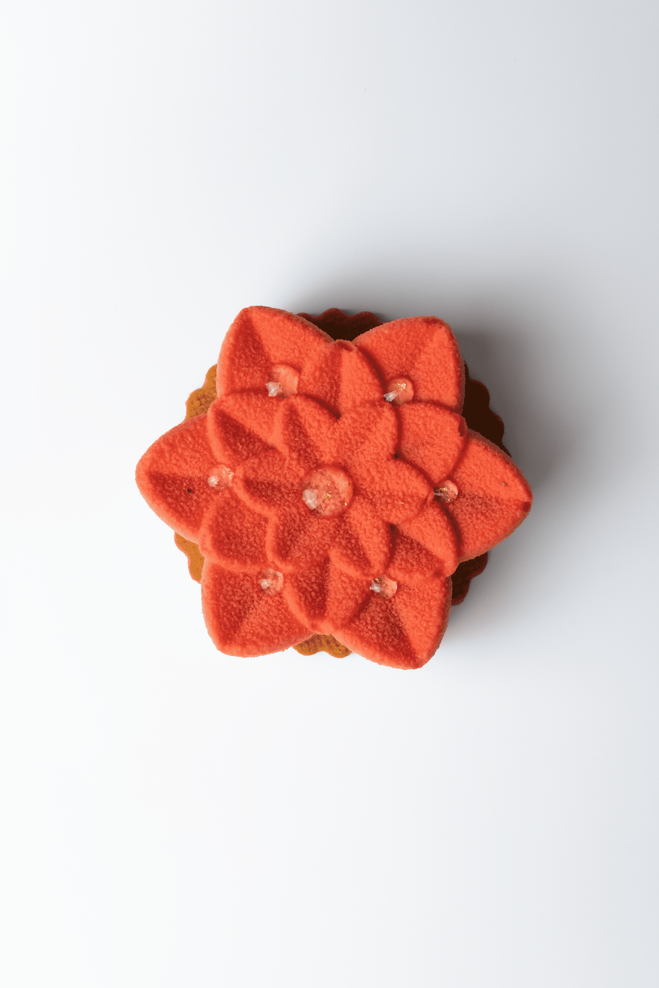 Pâte sablé, mousse légère chocolat blanc vanille, compotée de fruits rouge et biscuit vanille.