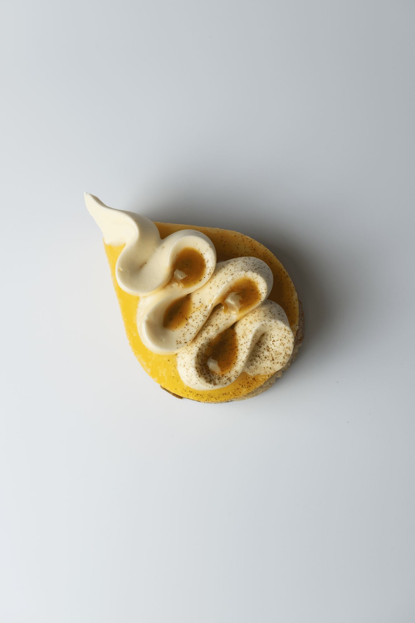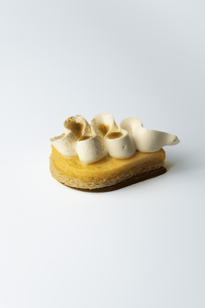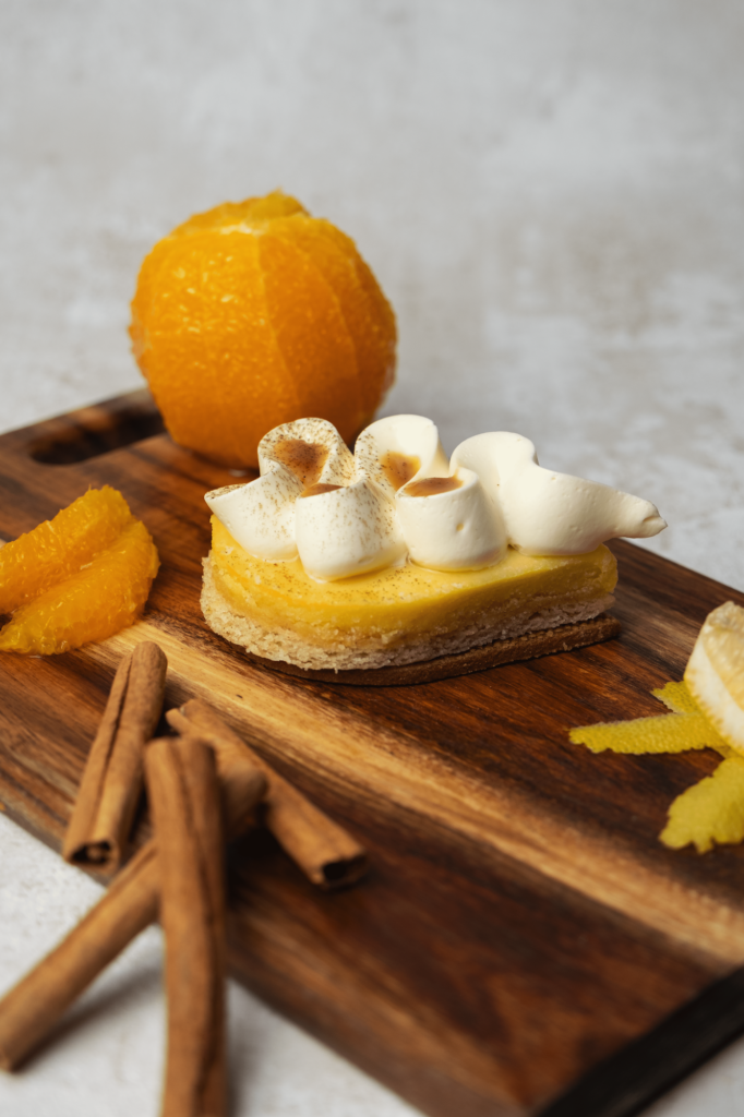 Notre interprétation des saveurs de la crème catalane : Financier à l’orange, crémeux infusion orange cannelle et citron et ganache montée agrumes.